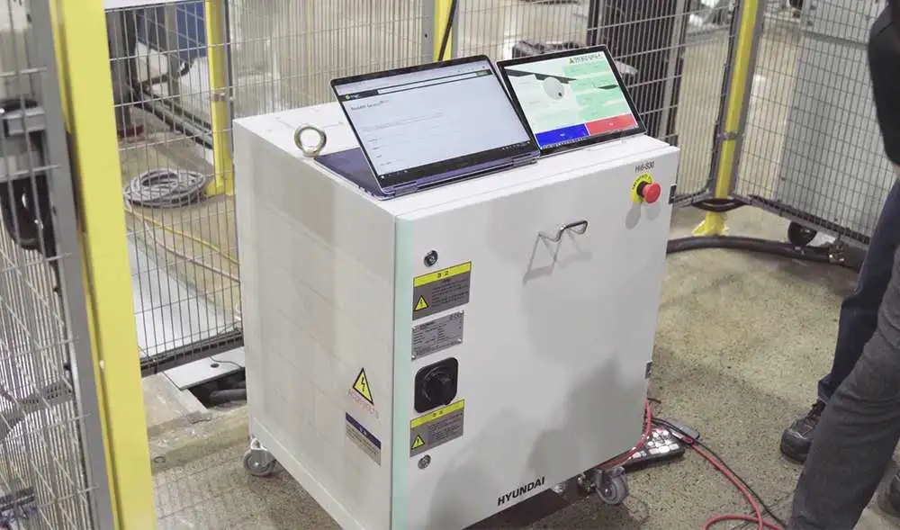 先来说下机器人的本体部分。工业机器人是仿照人的手臂来进行设计的。我们以现代机器人HS220型号为例,从外观来看,主要有底座、下框架、上框架、手臂、腕体、腕托等六个部分。