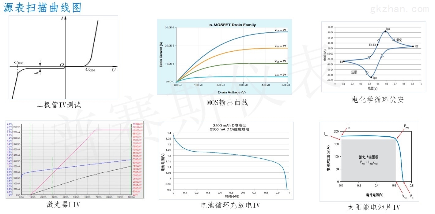 在光电器件和材料的研究和应用中,电性能表征是关键性的环节之一。实施分立器件特性参数分析的最佳工具就是数字源表。数字源表作为独立的电压源或电流源,可输出恒压、恒流、或者脉冲信号,还可以当作表,进行电压或者电流测量;支持Trig触发,可实现多台仪表联动工作;针对光电器件单个样品测试以及多样品验证测试,可直接通过单台数字源表、多台数字源表或插卡式源表搭建完整的测试方案。