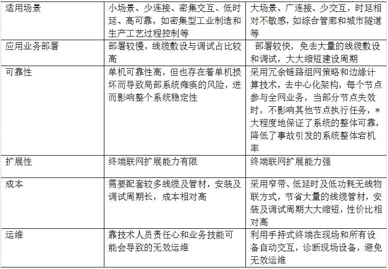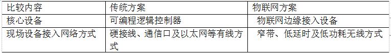 物联网作为一种新型技术,主要采用边缘计算、终端无线联网、机器通信(M2M)等,物联网方案与传统方案的比较如下表1所示。