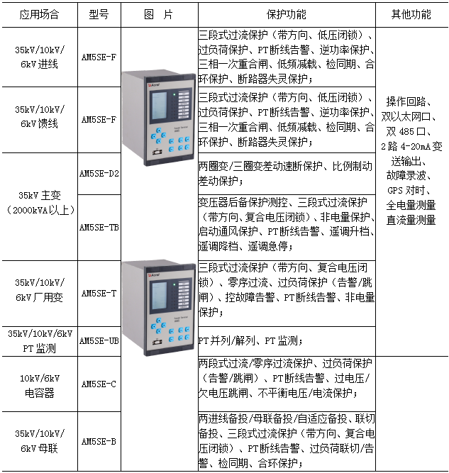 10kV出线柜各配置一台线路保护AM5SE-F,当回路故障时,用于跳开本柜断路器,切断故障。