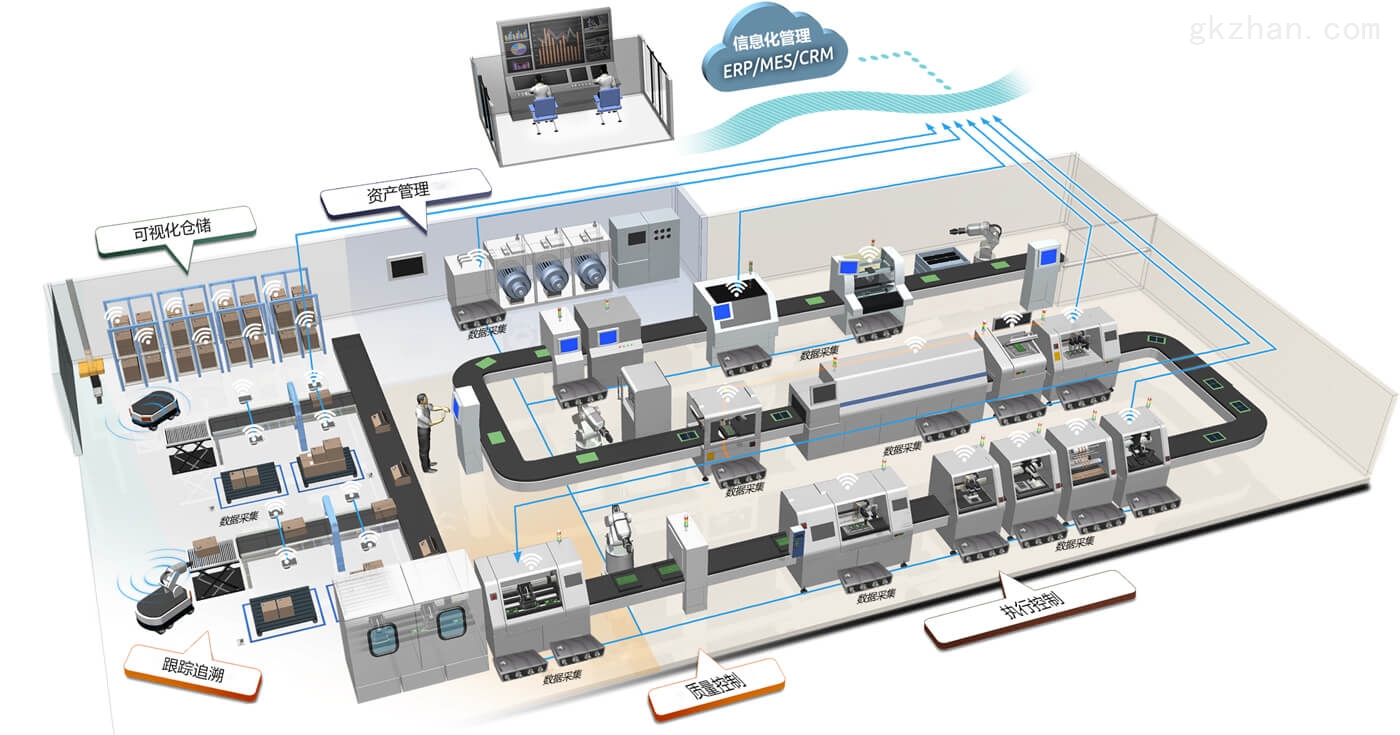 利用RFID电子标签、条形码、传感器采集生产线现场的实时数据,把读到的数据通过网络(有线或无线)传给上位设备(控制器或计算机)然而要管理松散的传感器就需要一种全新的、可以自动发现并组织网络的管理机制。采用的方法是部署RFID读写器,同时建立读写器网络连接,解决读写器网络的规划、优化和控制问题。物品上的RFID标签,配合连成网络的RFID读写器,每一次识别就意味着对物品的一次追踪。