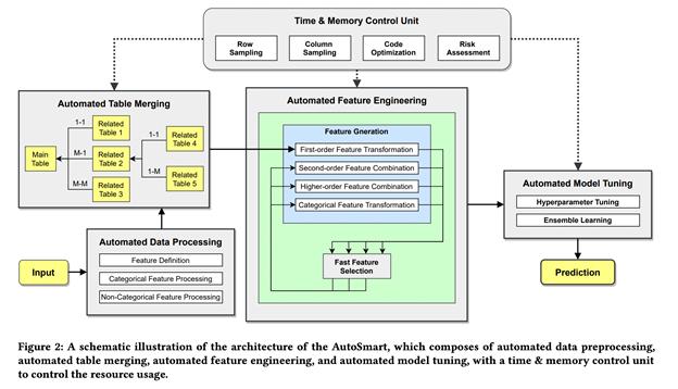 在这项工作中,深兰团队为时态关系数据提出了一个高效且自动的机器学习框架AutoSmart,包括自动数据处理、表合并、功能工程和模型调整,并与时间和内存控制单元集成在一起。
