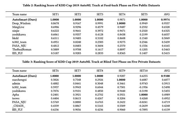 在这项工作中,深兰科技提出了一种解决方案,以端到端的自动方式成功解决了上述问题。论文中提出的框架AutoSmart基于深兰科技在KDD Cup 2019中AutoML Track冠军方案,这是迄今为止最大的AutoML竞赛之一((860支团队,约4,955份参赛作品)。该框架包括自动数据处理、表合并、特征工程和模型调整,并带有时间和内存控制器,可高效、自动地制定模型。论文所提出的框架在各个领域的多个数据集上均明显优于基准解决方案。