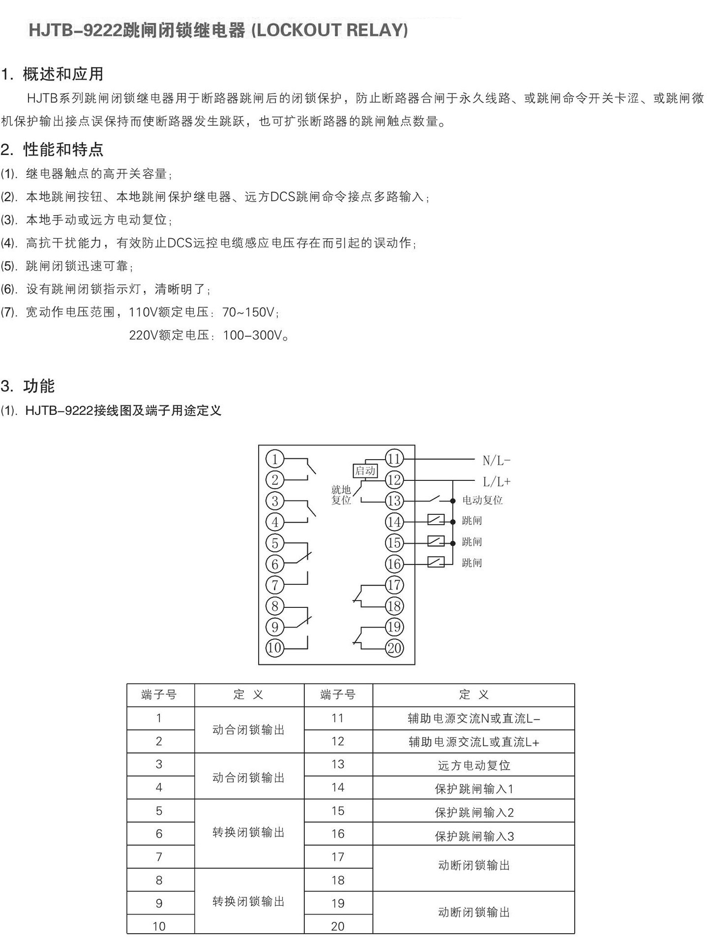 (1).HJTB系列跳闸闭锁继电器接线图及端子用途定义