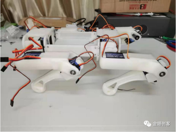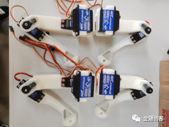 对所有的腿部重复以上步骤,完成四条腿的肩部舵机的安装。