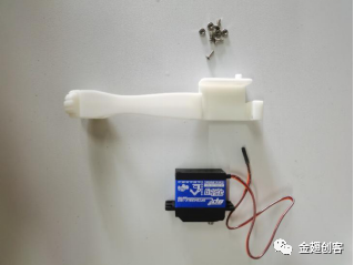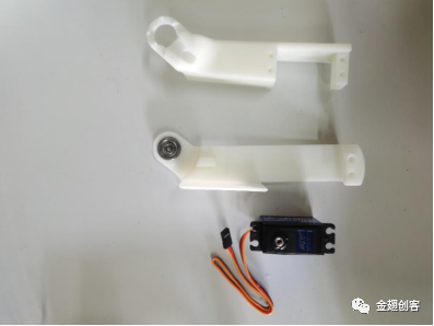接下来安装肩部舵机,注意舵机的齿轮与打印件背面凸起的小圆柱对应。