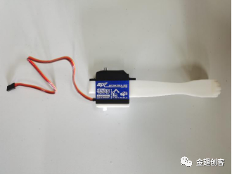 接下来安装肩部舵机臂,修剪原装的舵机臂使得满足3D打印件所留的凹槽,然后用热熔胶固定。