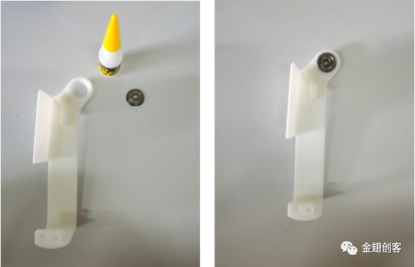将轴承放入凹槽中,并在轴承与打印件的凹槽边缘涂上胶水,注意不要在轴承内部涂上胶水,否则轴承就无法使用了。