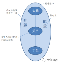 树莓派4B类似于机械狗的大脑,属于控制中枢,所有控制都由其发出,包括角度调整、舵机驱动信号等等;3D打印件就是整个机械狗的躯干,是搭建机械狗框架的基础,包括头部、尾部、身体、腿等部件;舵机属于机械狗的关节部位,利用舵机驱动板控制,通过轴承传递动力,驱动机械狗的腿部运动,从而完成行走运动;锂电池通过减压模块为树莓派和舵机等原器件供电。