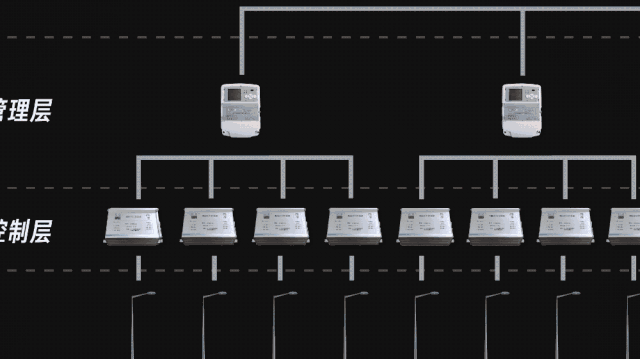 管理层是一个安装在路灯变电柜里的集中控制器,采集一条路上几十根路灯的参数、运行情况、用电量等数据,通过无线网上传回主站层。