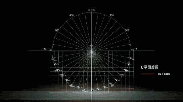 之后把光源横向旋转,纵轴再次测量,再横向旋转,再测量,以此把光源横向旋转 360° 后,就能测出光源在各个发光平面上不同角度的发光强度。