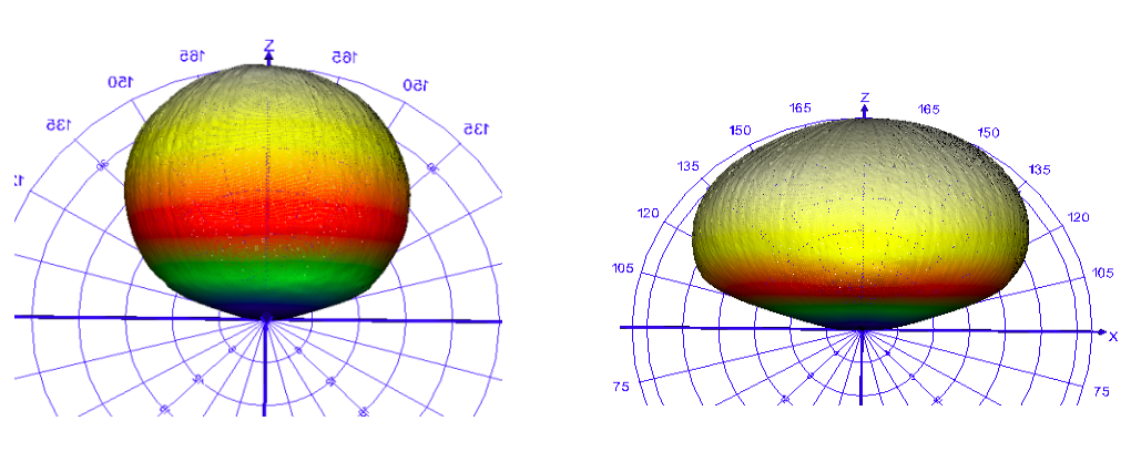 以下是某型号白光LED蓝光及黄光远场光强分布3D示意图(通过TechnoTeam免费软件3D View截取)。