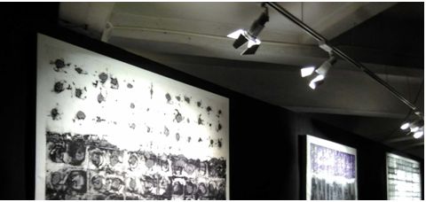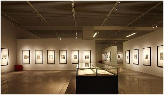 下图是大幅展画,通过遮光扇叶切光,使灯光控制在展画框附近。