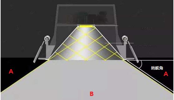 如上图所示,处于A区,人眼是接收不到灯具的直接投射的刺眼的光。但是,位于B区,就可能接收到眩光。