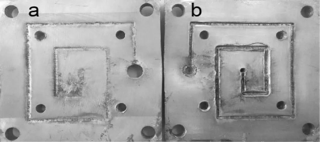 在连续90°转角条件下的引爆性能测试显示(图5),基于CL-20的UV光固化炸药材料可以可靠地在这种网络结构中进行引爆,并顺利经过多个90°转角。同时,越靠近中心的爆炸痕迹越宽(图5 b),这种现象应该是因为网络中心爆炸的约束性比网络边缘更强,或者说在外围区域的引爆中能量丢失更多。