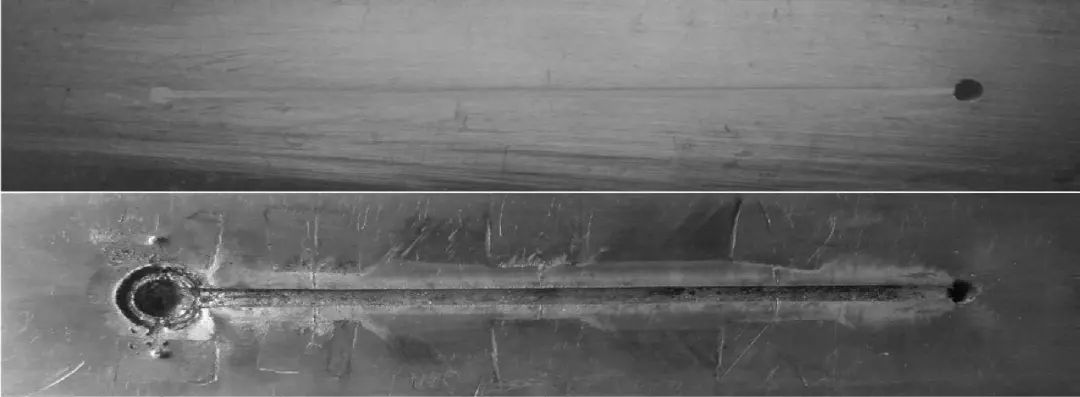 图4 基于CL-20的UV光固化炸药材料在引爆速度测试中,引爆前和引爆后的光学照片