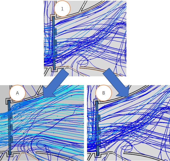 优化方向B:流体不动光源动,光源下移增强下方的光密度,适用于风道无法调整的情况。