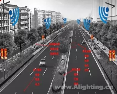 其中,A、B路段(四车道)布置45根(10米灯杆43根、12米灯杆2根),按22m-35m间距双边布置。C路段(双车道)布置12根(11米灯杆),按25m间距单边布置;D路段(双车道)布置11根(9米灯杆),按25m间距单边布置。总布置智慧灯杆68根,新建一个综合机房。