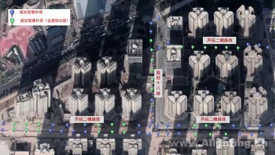 经现场勘察试点区域,结合周边基站布局情况,综合考虑运营商的需求情况,拟新增通信功能智慧灯杆布局如下: