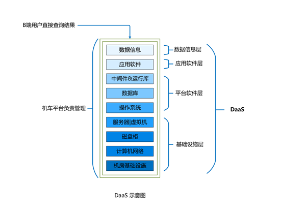 DaaS是Date as a Service的缩写,意思是数据即服务。机车平台负责建立全部的IT环境,收集用户需要的基础数据并且做数据分析,最后对分析结构或者算法提供编程接口,让数据成为服务。