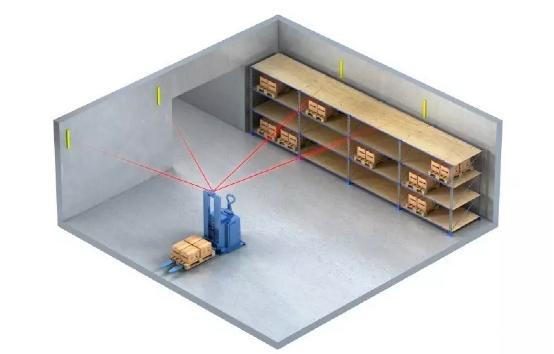 激光反光板导航,它的工作原理是在移动机器人行驶路径的周围安装位置精确的激光反射板,通过激光雷达发射激光束,同时采集由反射板反射的激光束来确定其当前的位置和方向,并通过连续的三角几何运算来实现机器人的导航。它的优势在于定位精确,安装反光板相对灵活;它的劣势在于依旧没有摆脱反光柱辅助定位设施的依赖,对反光板安装精度要求高,对地面环境、光线环境有一定要求。
