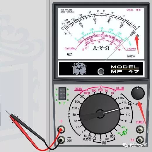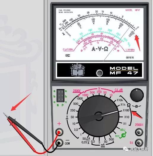 我们把万用表打到100Ω的量程,红黑表笔接触,如果指针不归零,就需要欧姆调零。