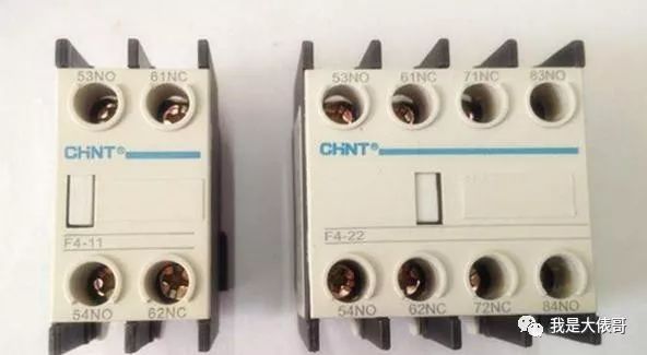 这两种都是辅助触头,标注NO的代表常开点,接触器自锁线路需要用到常开点。标注NC的是常闭点,接触器互锁需要用到常闭点。我们测的这个接触器上面就有辅助触头,增加了4组辅助触点。
