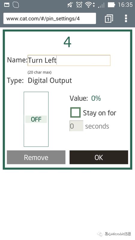 如果要编辑数字脚位,只要按下绿色框,便可开启数字脚位的选单,为了方便记忆脚位功能,可以在PIN Label中输入名字(图8d)。
