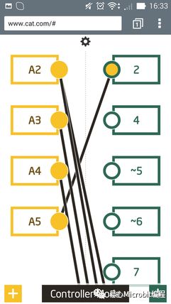 8c.接着则需要将线路连接起来,先点选左边模拟脚位上的黄色圆圈,再点选右边数字脚位上的绿色圆圈即可完成联机,请依照图8c所示将线路连接完毕。