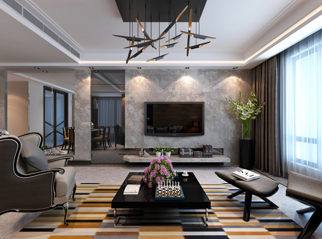 3、客厅只有2.8m的情况装吊灯也是可以,吊灯底灯可以距地面2.2m-2.4M,在特殊情况下吊灯距地2.0M也行,这样的做法更能创造出一种比较温馨的室内的环境以及精巧的装饰效果。有些吊灯可以根据实际空间调整长度,在安全的前提下,有些吊灯的吊线可以人为的去掉一段。