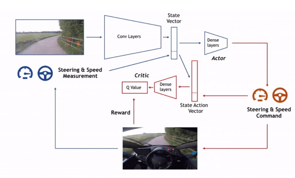 Wayve 研发团队认为既然是自动驾驶,就不需要手工编码一些规定,要充分的展现其智能的特性。团队采用了当下大热的深度学习强化学习算法,建立了一个可以像人类一样慢慢学习驾驶的自动驾驶系统。