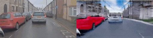 Wayve的模型由一对最初用于图像转换的卷积变分自动编码器式的网络组成,用于图像翻译,即无监督图像到图像的翻译网络(Unsupervised Image-to-Image Translation Networks, UNIT))。在两个域之间没有任何已知的对齐或对应关系的情况下,模型能够在它们之间进行转换。下图是一个捕捉场景主要布局的例子。值得注意的是,模拟器的视觉保真度在学习驾驶时并不是最重要的,他们的模拟世界就像卡通一样,依旧可以很好的完成仿真模拟。Wayve研究称,内容保真度比视觉保真度更重要。但是,有效地模拟其他交通参与者的行为仍然是一个巨大的挑战。