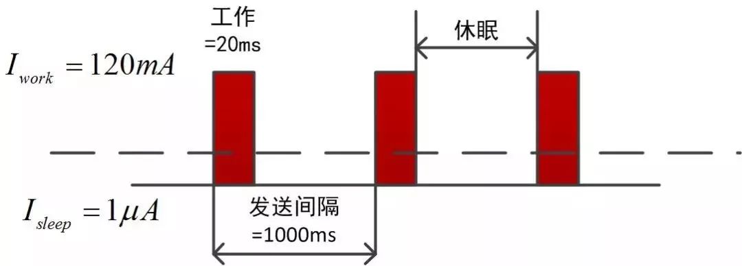 也就是说,1秒内平均电流大约为2.4mA,如果使用一节CR2032供电,理想情况下可以大约使用83个小时,约3.5天。如果我们将工作时长延长为1个小时呢?类似的,可以通过上面的公式算出,1小时的平均电流仅为1.67uA。同样一节CR2032电池可以支持设备工作119760小时,约13年!从上述这两个例子比较看出,增加发送包之间的时间间隔,延长休眠时间,可以降低整机的功耗,使得设备能够更长久的工作。这也是为什么无线抄表行业的产品普遍使用年限很长,因为它们每天只发送一次数据。