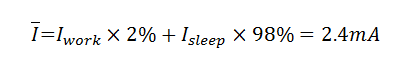 如果保持图3的工作电流和时长不变,发送间隔为1个小时,带入不同的休眠电流计算。按照图4的结果计算,一个小时的平均电流为5.57uA,而按照图5则为86.77uA,相差约16倍。同样使用一节200mAh的CR2032电池供电,产品按照图4的配置,可以正常工作时间约为4年,而按照图5配置,这个结果仅为3个月左右!