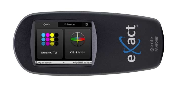 eXact便携式分光光度计集成Pantone光谱数据,支持PantoneLIVE色彩数字工作流程并针对专色和CMYK提出油墨键调节建议,使其成为处理专色的*选择。