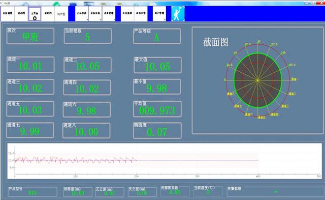 线材测径仪可以做到同截面8组测头检测、快速捕捉、高精度、高稳定度、动态轨迹变化。主要满足轧制圆钢检测要求,兼顾螺纹钢检测,具备可靠有效的本地和远程通讯网络控制。