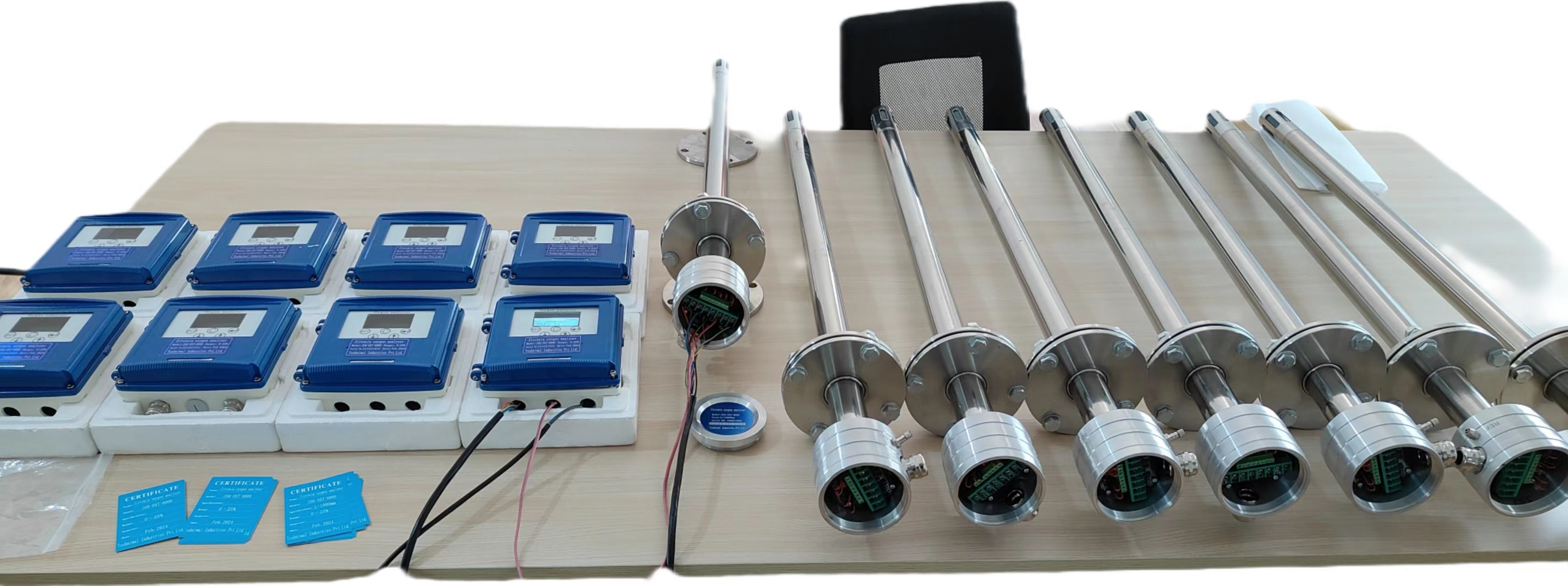 1、氧化锆分析仪检测器探头安装点的选择:一般安装点的烟气温度应小于750℃,烟气温度低,检测器使用寿命相对会长,反之使用寿命就会短。不能安装在烟气不流动或流动很快的地方,烟道漏气也应该比较小,检测器建议安装在省煤器前过热器后,因为锅炉系统烟气的流向从炉膛到汽包,经过过热器、省煤器、空气预热器,由引风机经回收处理后从烟囱排放。如果测点过于靠近烟气炉膛出口,温度过高,流速较快,会对检测器不锈钢外壳形成冲刷腐蚀,影响使用寿命;如果测点过于偏后,由于烟道系统中漏气现象,将造成测点处氧量值偏高,不能如实反映炉膛中的烟气氧量。