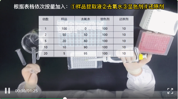 稀释倍数可依据样品量和待测指标进行预判,如待测指标多可提前进行稀释;试测得出的吸光值如低于0.3无需再稀释,如高于0.3则需要进一步稀释,加入样品提取液。加完样的微孔板置予 5℃微型振荡器恒温振荡