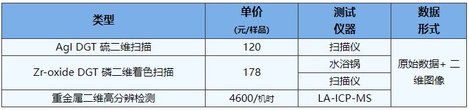 (2)DGT检测服务:包括ICP-MS重金属检测、二维磷检测、二维硫检测和重金属二维高分辨检测等。