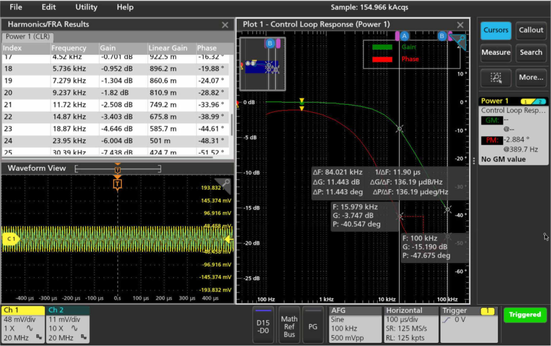 对于4/5/6系列混合信号示波器而言,波特图功能需要使用功率测量和分析选项(PWR)。功率测量和分析结果可通过控制回路响应测量得出。