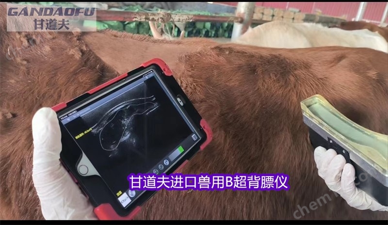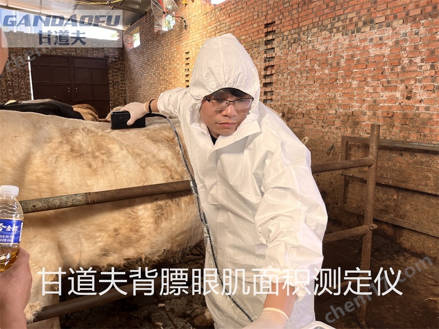 使用兽用B超背膘眼肌测定仪检测肉牛胴体性状可用于估计肉类等级质量。估计的常见特征包括肋眼面积 (,背膘 ,臀部脂肪 , 和肌内脂肪百分比等相关数据。眼肌面积(以平方英寸为单位)是在第 12 和第 13 根肋骨之间测量的,可估算动物的肌肉和瘦肉量。背膘(以英寸为单位)也在第 12 和 13 肋骨之间测量,是对动物外部脂肪的估计。该测量是在离动物脊椎最近的一端的肋眼长度的四分之三点处进行的,它是影响零售产品产量的最重要因素。臀部脂肪是衡量动物外部脂肪的额外措施,也是以英寸为单位进行测量的。这个测量是沿着动物的臀部在钩子和别针之间进行的。兽用B超背膘眼肌面积测定仪一种基于眼肌面积为性状的肉牛早期选种方法,属于肉牛育种方法技术领域.利用超声波技术对待测犊牛进行眼肌面积检测,计算眼肌面积数值;利用HRM技术对目标基因进行基因分型;待选牛体重,体尺测量;依照牛体型外貌评定标准,对待选牛外貌进行评分;根据上述步骤的测定结果,建立早选指数计算公式.本发明避免了错留单一性状高而其它性状低的个体,提高了整体的质量;避免了优秀个体因某一性状而淘汰;以眼肌面积和基因标记为主导,可以在6月龄时进行提前评定,选择,降低了选种周期,增加了准确性.缩短了世代间隔,进而提高了育种效率,后备种牛初选时间提早1年.对整个肉牛育种领域的早期选种提供了实践依据.实用性强.