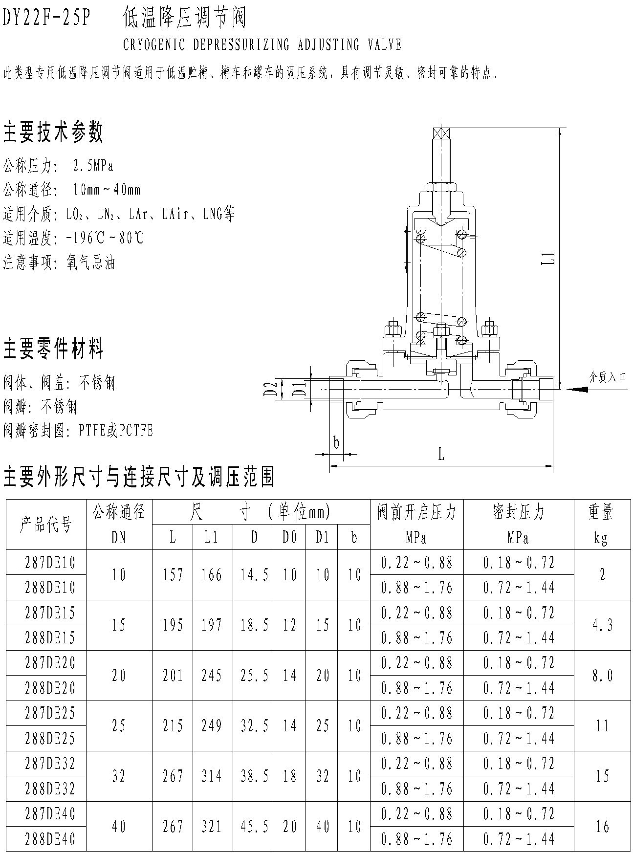 四、LO2低温液氧减压阀操作使用说明产品特征