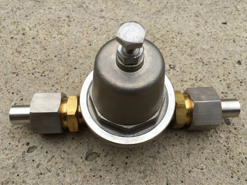 2、转动调节螺钉,改变闸门开启高度,调节高压气体通过量,达到所需压力值。