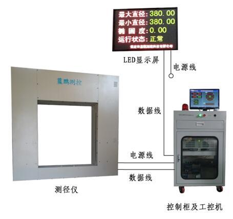 大直径测径仪的两组测头的间距可以进行调节,因此,可通过输入控制命令,自动调整测量范围,达到多规格大口径管材的测量。