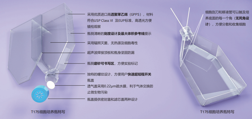 A:以T25为例,指的是生长表面积为25 cm2的细胞培养瓶,根据瓶子形状,瓶盖类型,瓶颈类型及不同培养表面对应不同货号的产品。