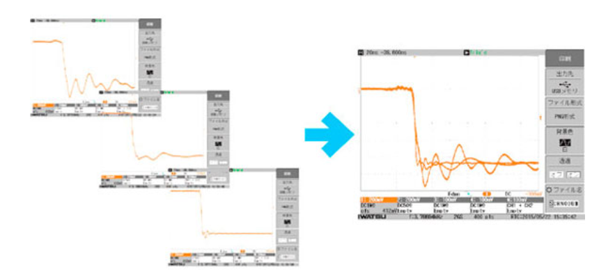 自动测量导入的各周期(时间轴)波形。可通过长存储器导入大量数据,看清最大、最小值的偏差。还可分析光标夹入的区间。在用途方面,可用于马达旋转的顺滑度、机电设备的时序错误、旋转设备的负载所致变动、旋转编码器的旋转不均衡等测量。