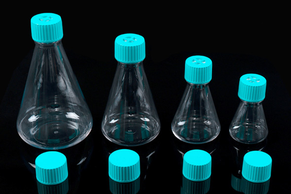 三角培养摇瓶适用于培养对氧气要求较高的昆虫细胞系,相对于培养瓶、皿、转瓶,所需的工作量更小,是一款经济实惠的细胞培养工具。摇瓶培养技术问世于本世纪30年代,由于简便、实用,很快被发展成为微生物培养中极重要的技术普及,并广泛用于工业微生物菌种筛选、实验室大规模发酵实验、种子培养等。