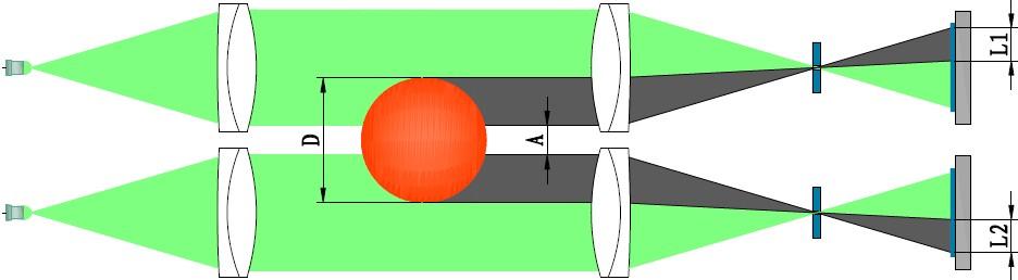 测径仪的每组测头均由光源、光路系统、感光单元和信号采集及计算系统等部分组成。光源使用特种LED,光路系统采用平行光管的准直平行光光学结构,感光单元采用高频率和高分辨率的线阵CCD。光源通过光路系统形成平行光束,平行光束包容的视场即为测量范围。被测物体从该范围内穿过时在CCD感光面上形成影像,通过相应的计算,得出被测物体轮廓尺寸。