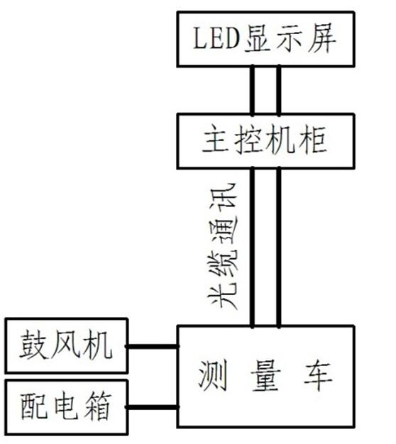 基本测量功能在测量车内完成,测量车与上位计算机间采用标准工业接口通信和光纤传输方式,检测的数据分别在主控计算机的显示器和现场大LED屏上显示。