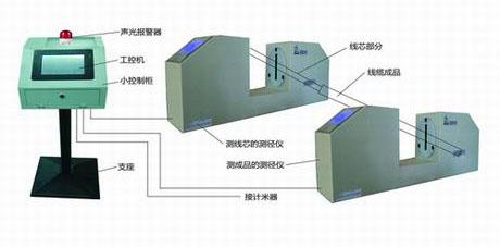 电子线的线径、厚度几种检测设备均是以光电测量原理为基础的测量设备。测径仪为非接触式的无损检测设备,可以在线检测电子线的线径尺寸。